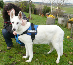 The white German shepherd Penelope - she is called Penny - is six years old and blind. She ended up at the Munich animal shelter, was severely emaciated, had diarrhoea and was in a poor general condition. After a thorough veterinary examination, it turned out that she had a pancreatic malfunction and tumours. Penny underwent two operations and was put on a special diet with the addition of supporting enzymes, which she would have to follow for the rest of her life.